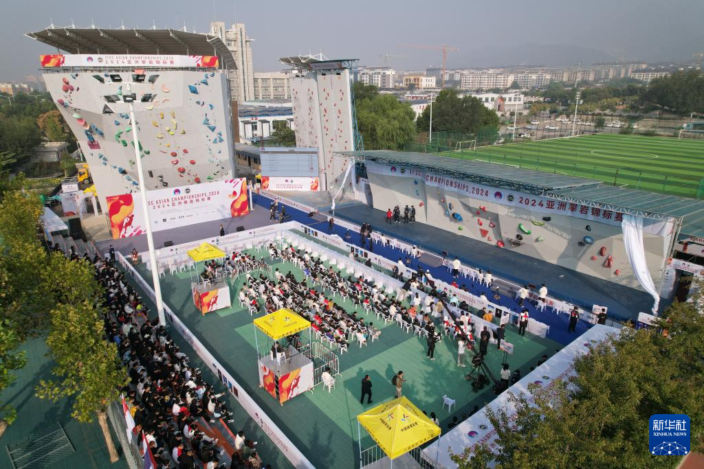 10月10日拍摄的亚洲攀岩锦标赛现场。(无人机照片)