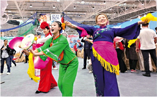 由文化和旅游部主办,山东省文化和旅游厅、济南市人民政府承办的第八届中国非物质文化遗产博览会,10月17日至21日在济南舜耕国际会展中心举行。本届非博会以“保护传承 守正创新”为主题,邀请211项非遗代表性项目、100余位非遗代表性传承人,全面展现我国批准《保护非物质文化遗产公约》20年来非遗保护成果。在山东非遗展区,济南泥塑兔子王、面塑,潍坊风筝、核雕,淄博陶瓷、琉璃等山东各地“招牌”非遗集结式亮相,传统武术套路拳法之一水浒拳、山东快书、泰山皮影戏、胶州秧歌、曲山艺海等特色表演吸引了不少人围观拍照,也为非遗项目的展示增添了一抹动态的亮丽风采。图为国家级非遗胶州大秧歌吸引了一大批观众欣赏。 记者 周青先 孙远明 摄影报道