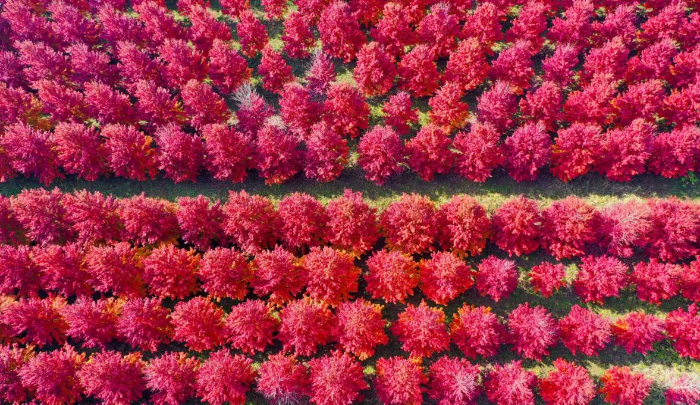 深秋时节,漫山遍野的红枫叶在微风中轻轻摇曳。10月26日,走进山东省日照市五莲县汪湖镇的世丰农业千亩红枫林,满园的美国红枫像是被打翻的调色盘,或鲜艳夺目红得似火,或似夕阳的余晖洒落在叶片上橙色动人。(刘晓楠)
