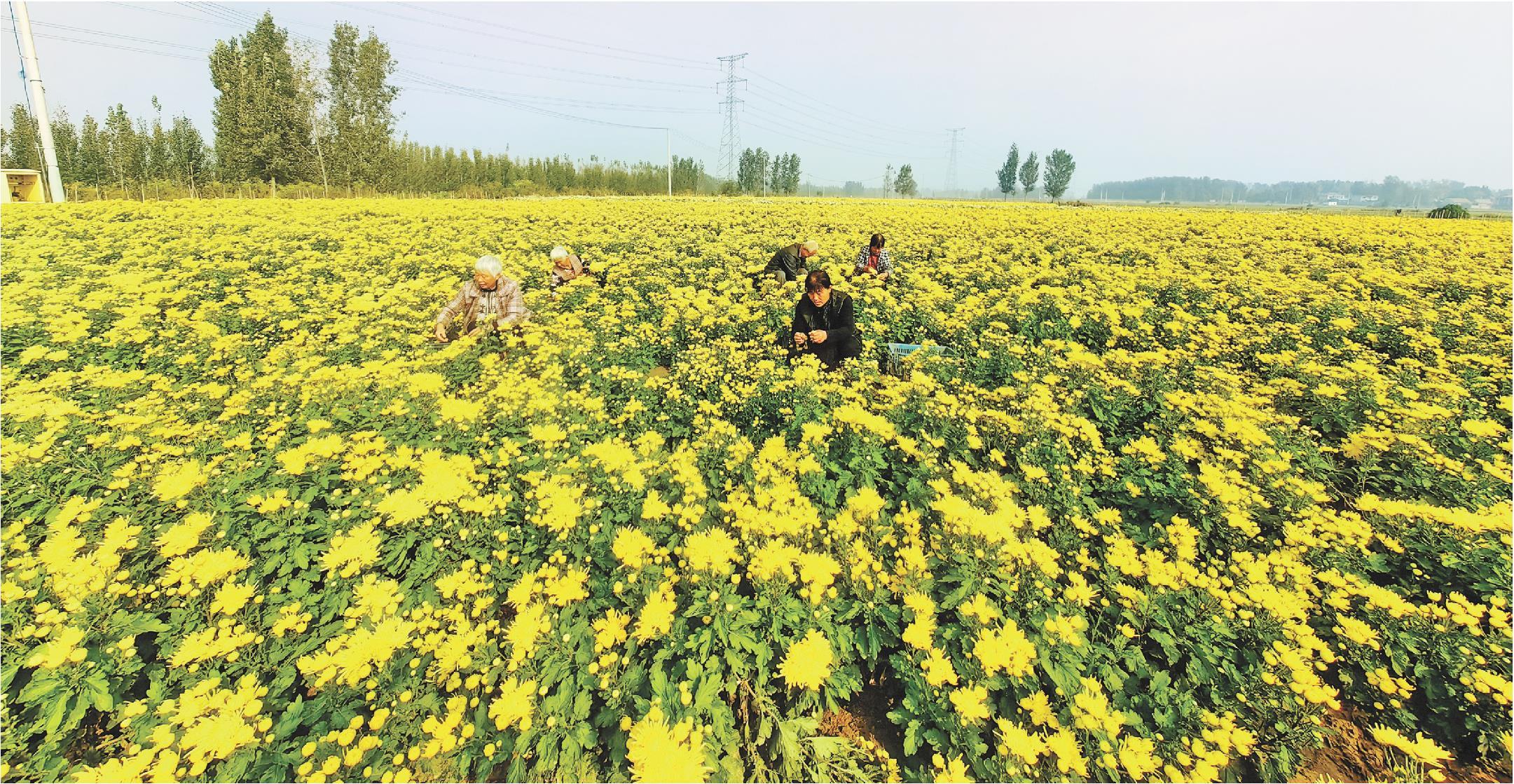 11月3日,在山东省菏泽市牡丹区安兴镇孟王庄村,村民在采摘金丝皇菊。安兴镇村民种植贡菊、金丝皇菊的面积逐步扩大,带动种植户亩均收入2万元以上。