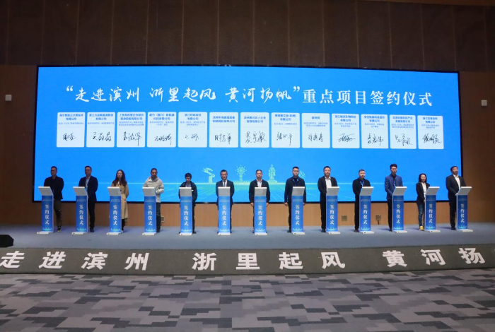 11月6日,滨州经济技术开发区举行“走进滨州 浙里起风 黄河扬帆”重点项目签约仪式,与浙江海宁思核云计算技术有限公司、浙江川达新能源股份有限公司等11位浙江企业家集中签署11个合作项目。