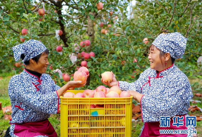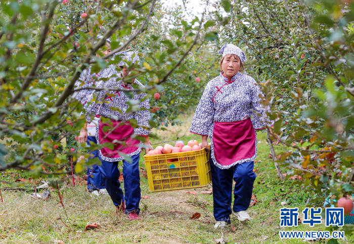 11月10日,山东莱西市河头店镇东大寨新村的村民在搬运丰收的苹果。新华网发(张进刚 摄)