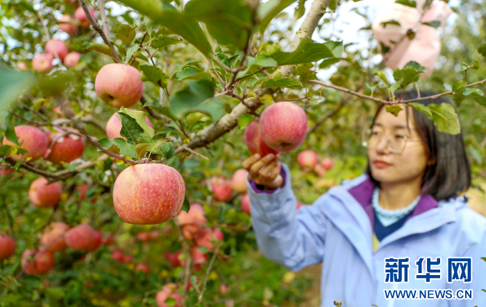 11月10日,市民在体验采摘苹果。新华网发(张进刚 摄)