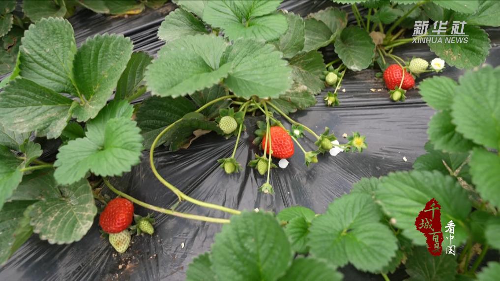 初冬时节,走进山东省菏泽市定陶区仿山镇富硒草莓种植采摘园,诱人的香味扑鼻而来,绿叶白花间缀满了鲜红娇艳的草莓,一颗颗晶莹剔透,令人垂涎欲滴。工人穿梭在绿意盎然的草莓植株间,俯身挑选今年第一茬成熟的草莓,确保第一时间“抢鲜”送到客户的手中。