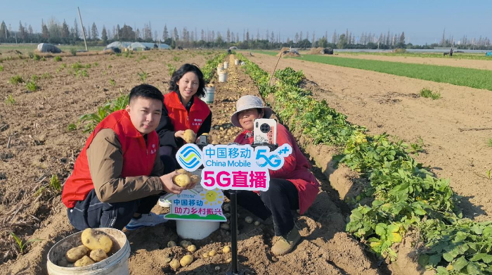 近日,“中国马铃薯之乡”山东省滕州市种植的马铃薯喜获丰收。薯农们正在田间地头忙着采收、包装、运输,将新鲜的马铃薯销往全国各地。山东移动滕州分公司志愿者们,通过5G高速网络帮助薯农开展线上带货直播,拓宽马铃薯销售渠道,促进农民增收致富。
