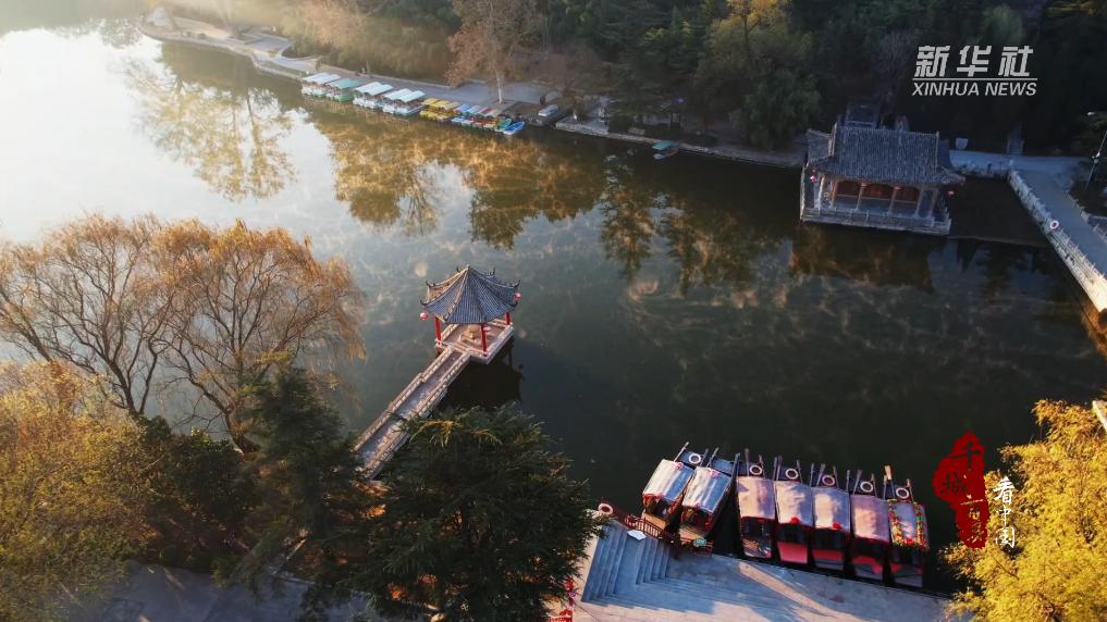 老龙湾,位于山东省潍坊市临朐县。大雪时节,龙湾湖畔风光旖旎,湖面仿佛被一层薄薄的轻纱覆盖,在冬日的阳光下熠熠生辉。