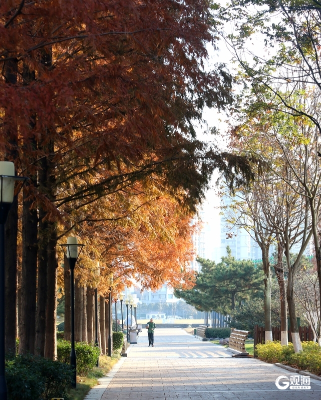 青岛的四季,各有各的美,各有各的韵味。虽“大雪”已过,青岛却是秋色未尽,彩叶漫枝头。在青岛西海岸新区唐岛湾湿地公园北岸,火红的枫叶、苍翠的松树、焦糖色的水杉……色彩斑斓、如诗似画。