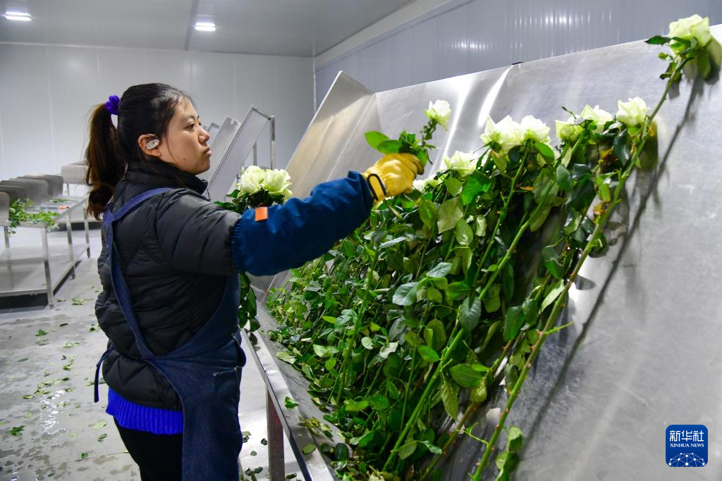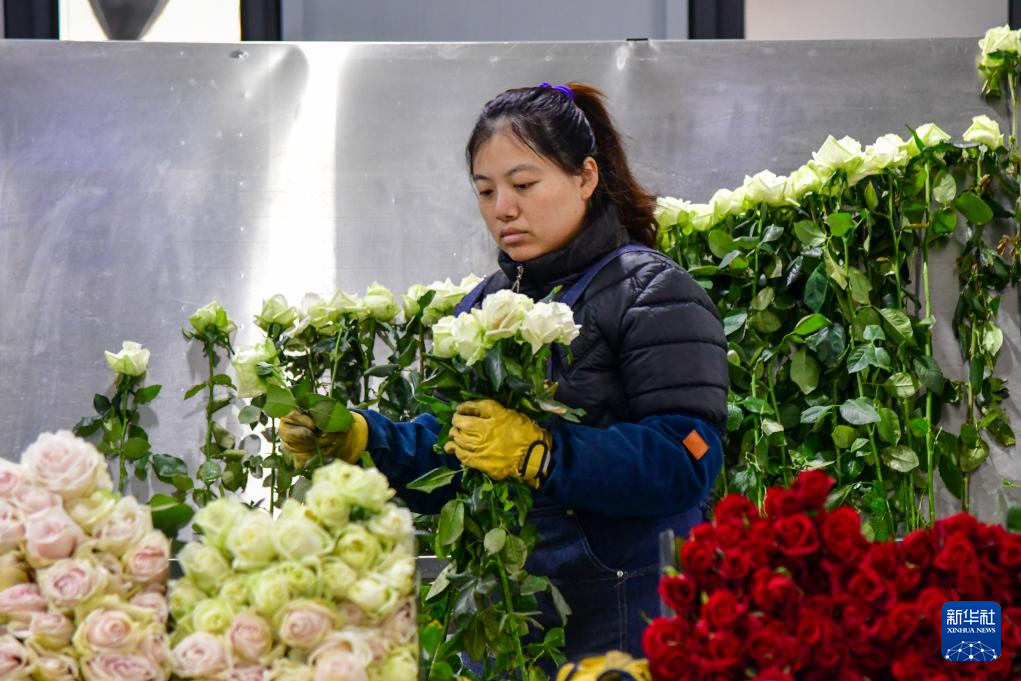 12月10日,工作人员在分拣鲜切玫瑰。新华社记者 朱峥 摄