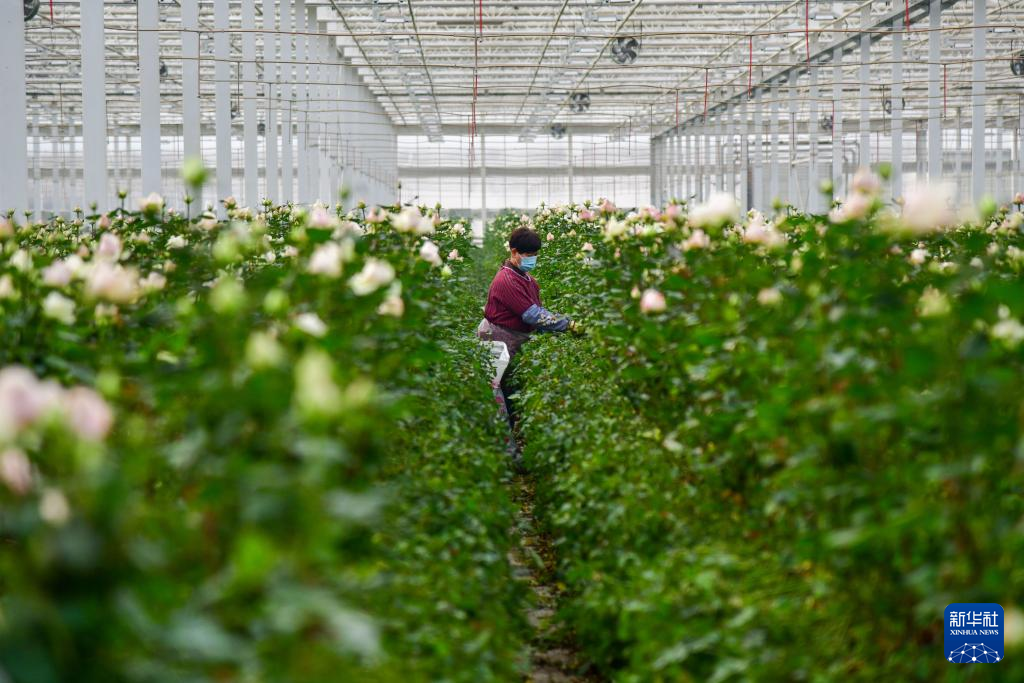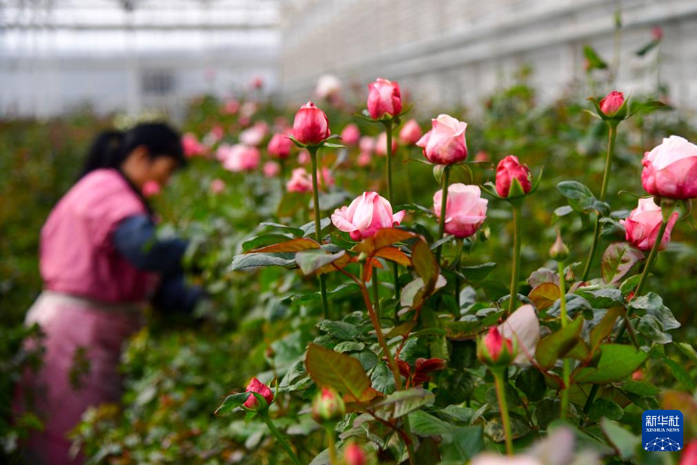 12月10日,工作人员在温室内采摘玫瑰。新华社记者 朱峥 摄