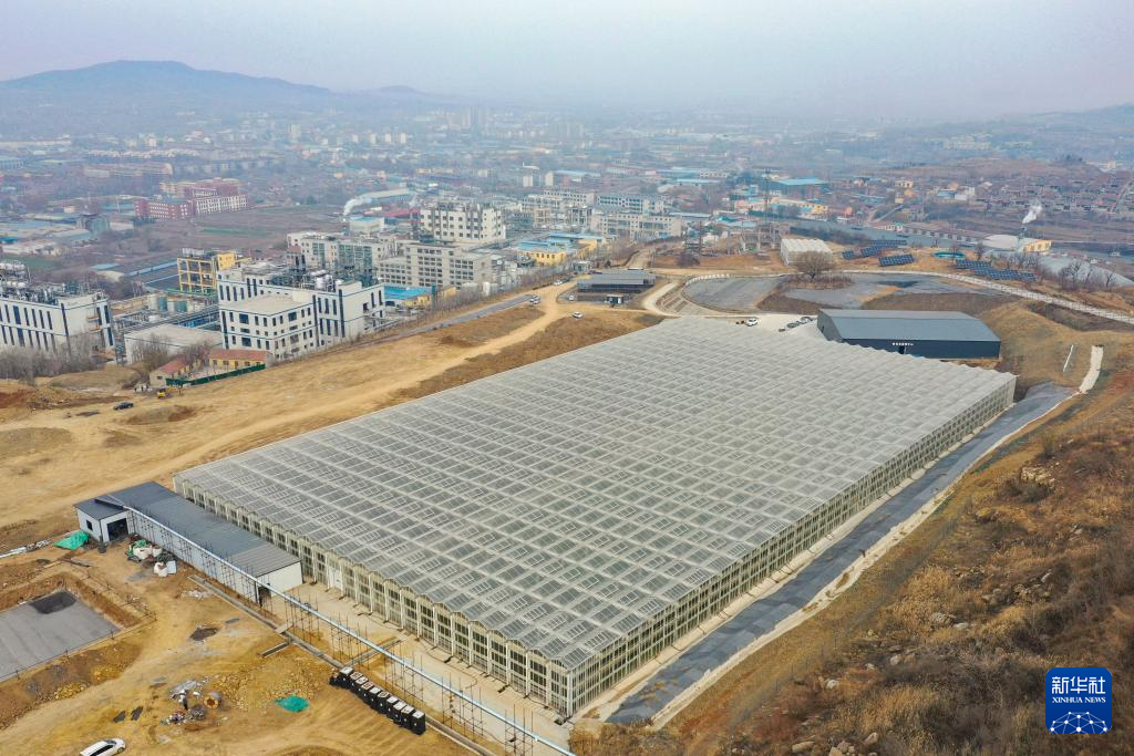 这是12月10日拍摄的大奎山花能互补示范项目智能温室(无人机照片)。新华社记者 朱峥 摄