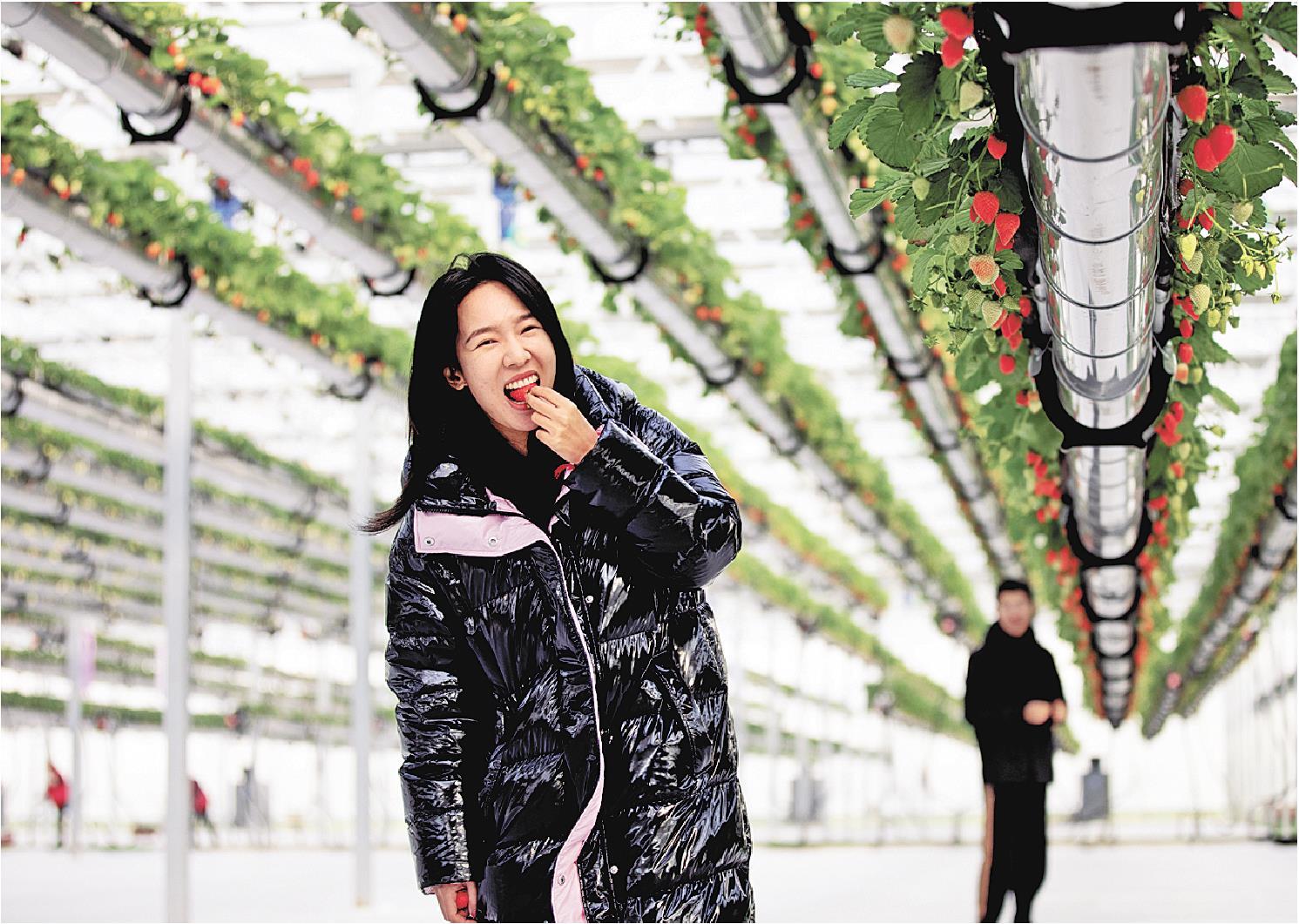 “我们种植草莓的培养槽里面没有泥土,而是采用有机质进行栽培,灌溉也使用矿泉水,不仅避免了土传病虫害的发生,草莓也更香甜。”该片区运营中心副主任成植文介绍,元旦期间,产业园还为游客们准备了丰富多彩的娱乐活动,通过举办草莓音乐节和黄河大集等,让游客在体验采摘乐趣的同时,享受音乐、美食等带来的欢乐。目前,每天能接待两百余名游客前来采摘。