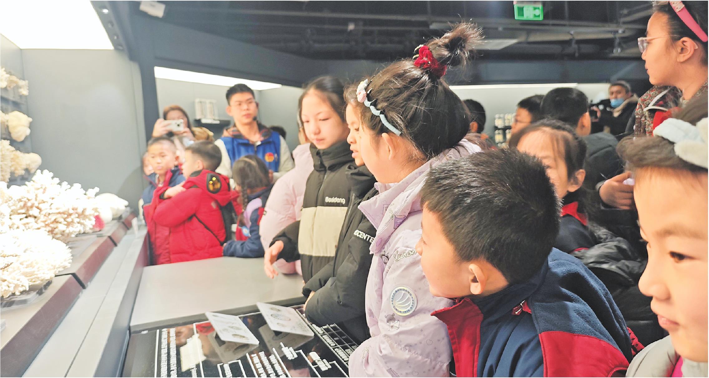 1月12日,青岛市科协“科技筑梦 育见未来”科普游启动,莱西市第二实验小学50名学生参加首场科普游活动,参观中国海洋大学海洋生物博物馆。