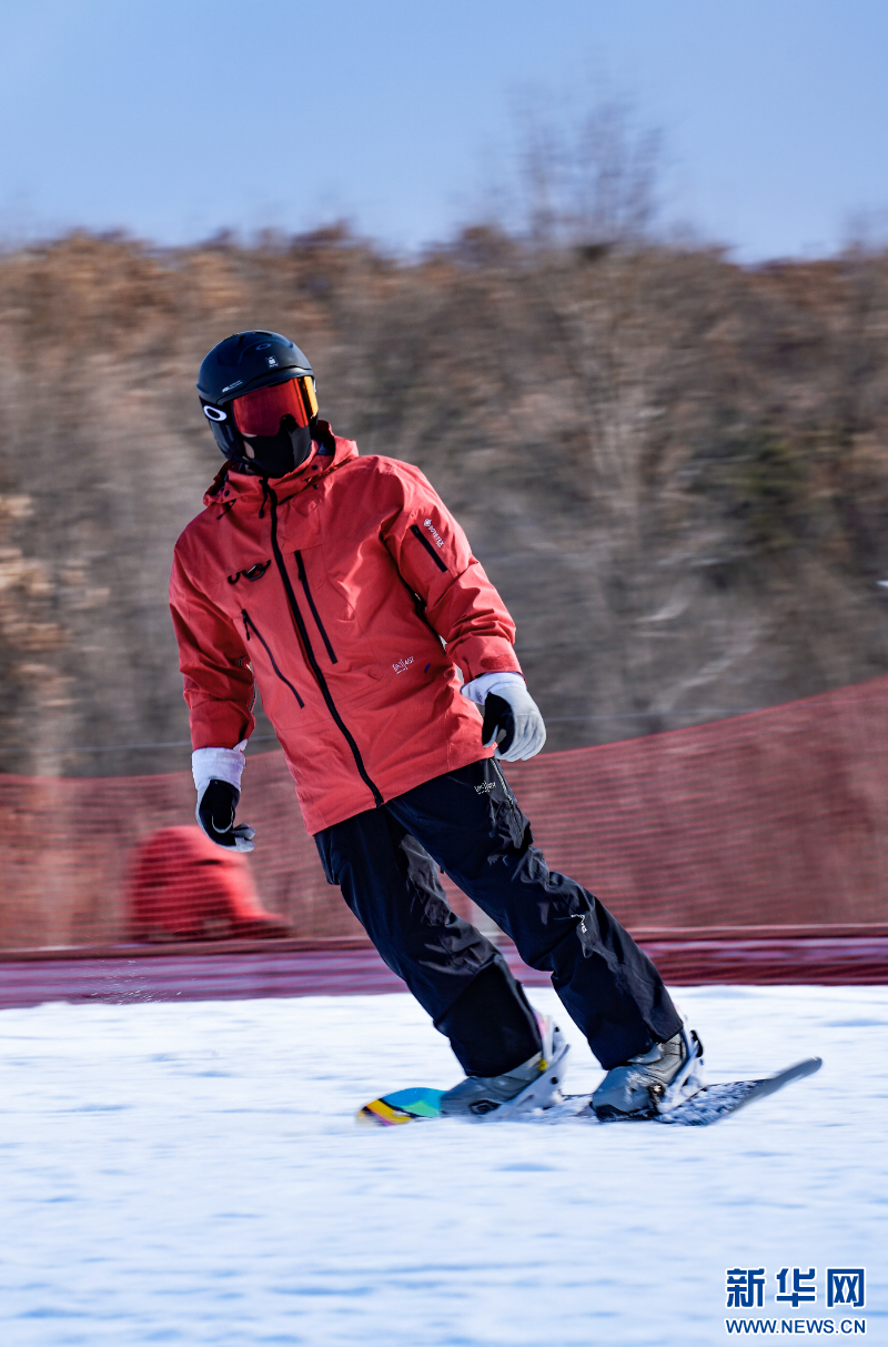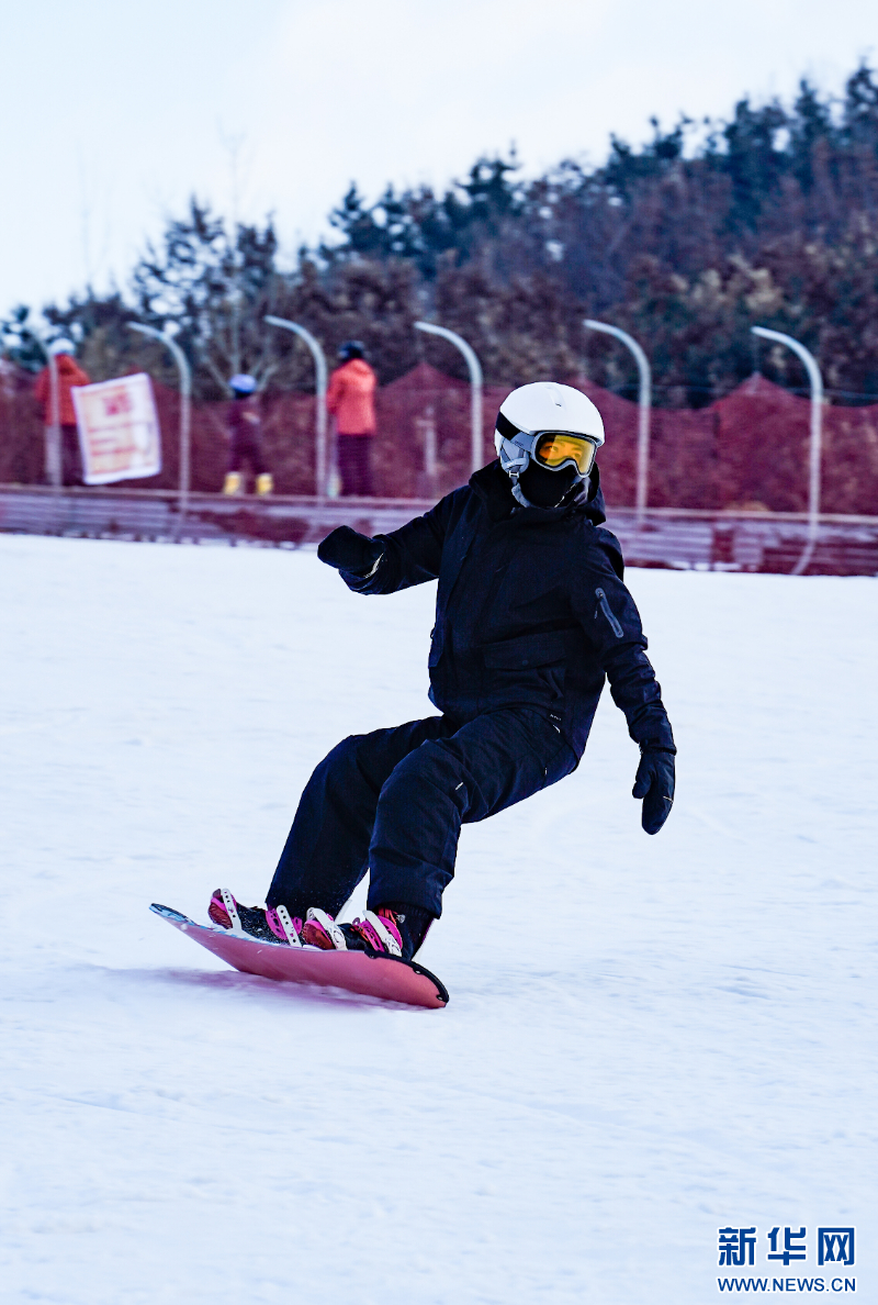 一名游客在烟台南里必捷滑雪公园场滑雪。新华网发