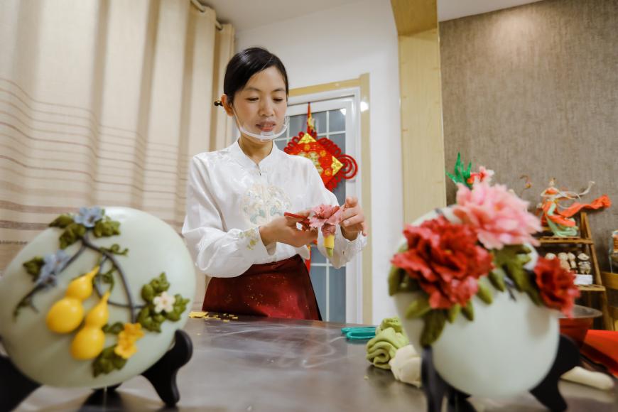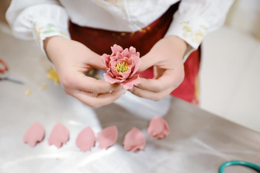 面团经过巧手匠心,变成了多姿多彩的花瓣。新华网发(宋年升 摄)