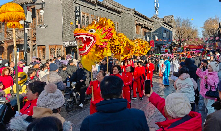 乐逛古城过大年氛围浓烈。青州古城举办“五福打卡——峱宝宝送祝福”、城楼灯光秀演出等大型新春互动项目,烘托喜庆氛围。从初一到初七,民俗展演队伍齐聚古城,为游客、市民共同打造传统文化盛宴。市文旅局举办非遗有礼、非遗赶大集、非遗展示展演、非遗新春庙会、“有淄有潍”交流等活动,搭建线上线下展示平台。八喜文化旅游集团举办“新春福至宋韵潮玩”“祥蛇贺岁祈愿状元街”活动,利用青州宋代元素和状元文化,提升游客体验。