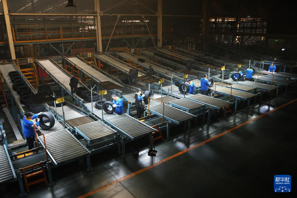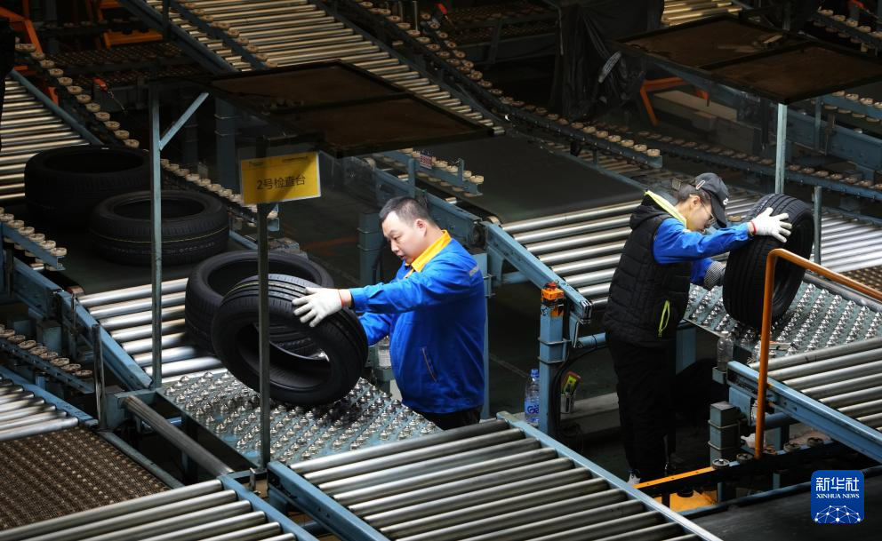 春节假期过后,山东省轮胎产业重镇广饶县的轮胎出口企业抓紧时间开工忙生产、完成出口订单。目前广饶全县有规模以上轮胎企业57家,2024年全县轮胎产业出口额达265.7亿元。新华社记者 徐速绘 摄pagebreak