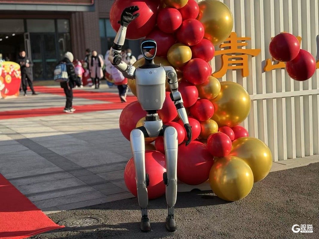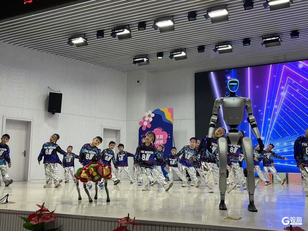 “你好!新学期加油!”青岛同德小学门口,智能机器人“同小德”十分醒目,它与校长张淑世一同迎接学生归来。学生们满怀欣喜,纷纷与“同小德”打招呼,兴奋地拉着它合影留念。学校的开学典礼科创色彩十足,机器人“同小德”领衔憨态可掬的机器狗翩翩起舞,引来学生阵阵欢呼。学生表演《你好,未来》节目,以朗诵与舞蹈的形式讲述“我的AI梦想”,激发了同学们探索科技奥秘的热情。