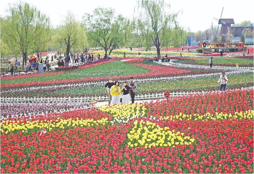 近日,山东滨州秦皇河国家湿地公园百万株郁金香花海美丽绽放,吸引大批市民走出家门,感受美好春光。滨州市适时启动“乡村好时节·游购乡村”主题活动暨“郁”见滨州、共赢未来系列文旅促消费活动,以“文旅+”融合激活消费新场景。