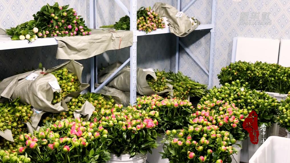 近日,山东省菏泽市定陶区的千亩大棚芍药迎来采收旺季,花农们正抢抓“采切”黄金期。这里种植了莎拉、珊瑚系列等120余个芍药品种。工人们穿梭在花田间,娴熟地进行分拣、杀菌、包装等环节,新鲜的芍药花每天通过冷链运输,次日即可直达全国市场。