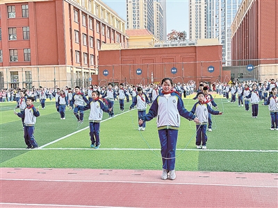 在麦岛小学,课间活动同样精彩纷呈,除了传统的跑步、眼睛保健操外,该校还开展“领操员选拔活动”“跳绳、仰卧起坐达优达标赛”“集体长绳赛”“趣味运动会”等,极大地提升了学生们的运动兴趣。“目前,我们对各个班级的活动内容没有做统一要求。课间时间,有的班级会开展跳绳、踢毽子活动,有的学生还会自己设计小游戏,只要大家能动起来、出出汗、放松身心,我们都予以鼓励和支持。”麦岛小学副校长毛德洁说。