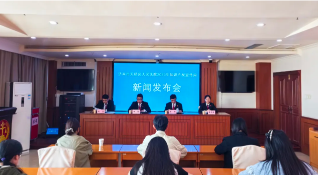 4月24日,济南市天桥区人民法院召开2025年知识产权宣传周新闻发布会。天桥法院审委会专职委员胡滨发布知识产权审判白皮书并通报天桥法院知识产权审判工作情况,行政审判庭(综合审判庭)庭长韩峰通报了天桥法院九大知识产权司法保护典型案件,行政审判庭(综合审判庭)员额法官栗方程回答了相关提问。
