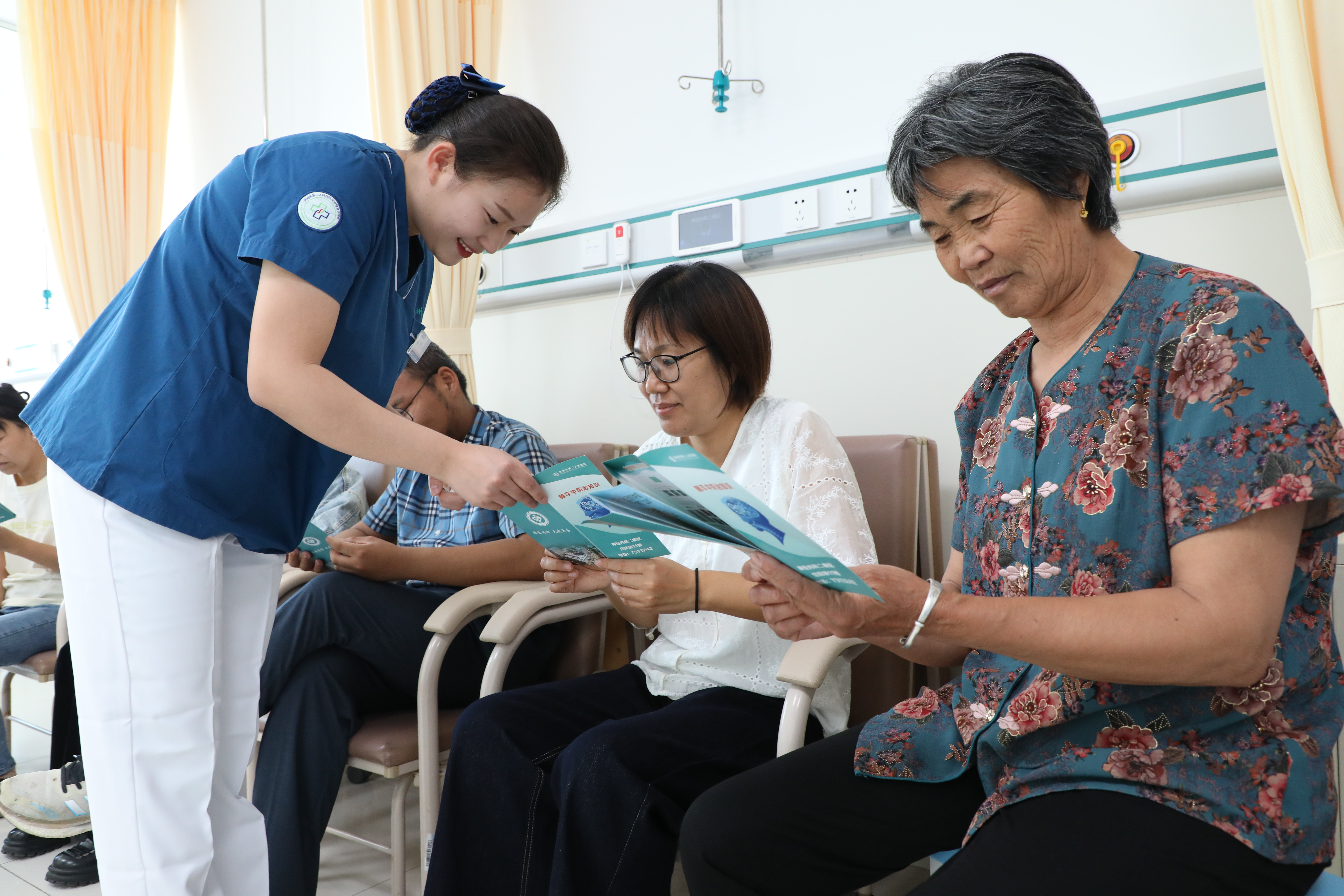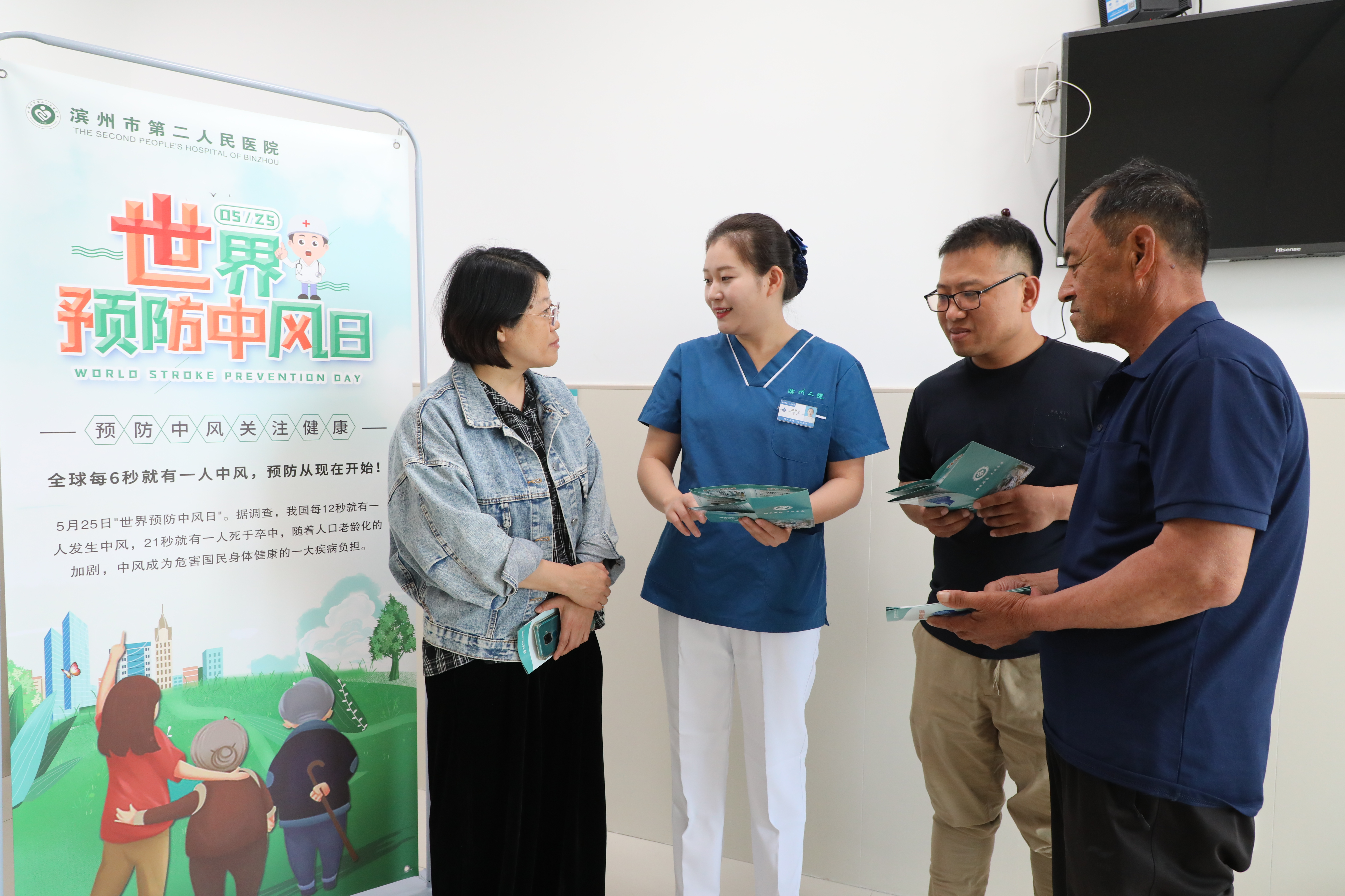 5月24日,在山东省滨州市第二人民医院,护士在向群众讲解脑卒中预防知识。