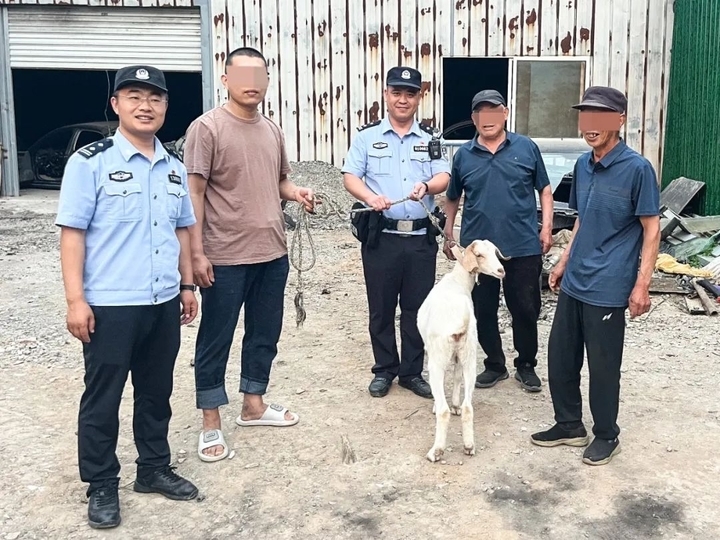 接警后民警迅速赶到现场,根据刘先生的描述,民警大致判断羊应该是走失了,随后民警走访周围村民发现这只羊已经跑到了邻村,民警按照邻村路线经过开展寻找,最终在厂房中发现了丢失的羊。