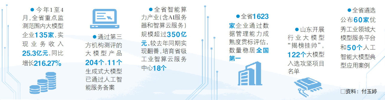 目前,山东数字经济核心产业企业突破40万家,大数据产业占全国的1/8,去年山东获批建设国家数据要素综合试验区,这些都是发展人工智能的关键支撑。
