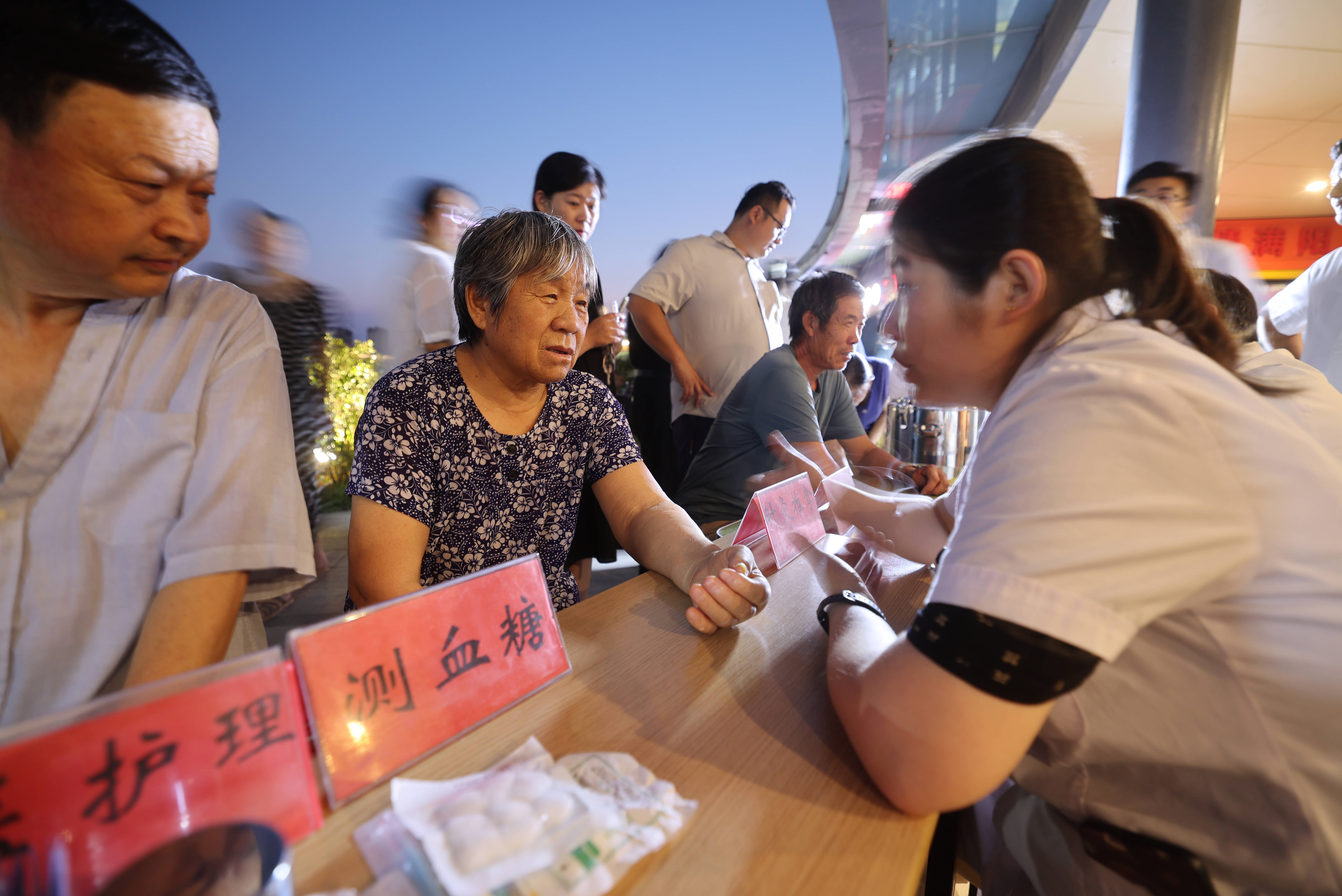 7月16日,山东省沂南县第三医疗健康服务集团在城区界湖公园举办“中医药夜市”活动,医护人员变身“夜市摊主”,现场展示针灸、推拿、刮痧、耳贴、艾灸等传统中医疗法,免费为群众提供健康咨询和诊疗服务,吸引了众多市民前来“探店”,为当地夜生活增添独特的“杏林药香”,也为中医药文化的传承与创新发展注入新的活力。据介绍,“中医药夜市”将在暑期持续进社区、进公园,面向市民开放。(王彦冰 宗艳)