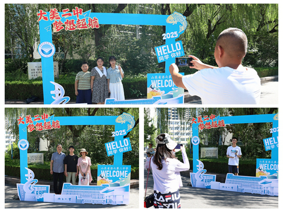 报到过程中,新生和家长拿到了新生家长指导手册、新生发展指导手册、新生学习手册,为迎接高中学段开学做好调试、做足准备。大家纷纷到留影板前合影留念,记录这一重要时刻。