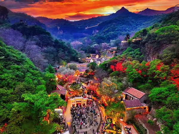 今夏,淄博红叶柿岩以沉浸式民族风情场景为主题,集雨林秘境、云雾繁花、异域风情、多元文化于一体,打造翠绿芭蕉、鲜花河道、瀑布沟渠、云雾光影等打卡场景。