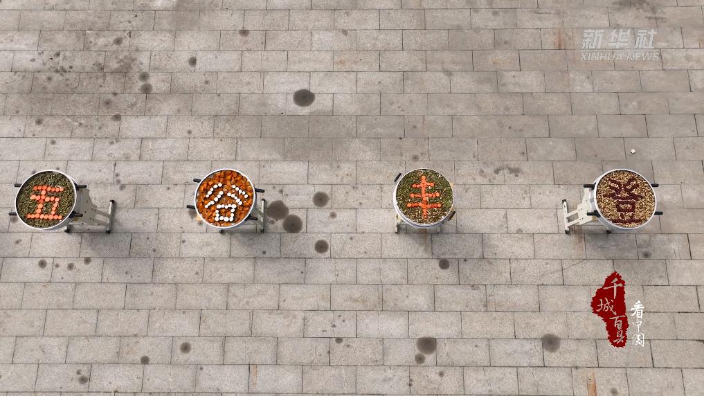 在定陶区冉堌镇的广场上,锣鼓喧天,热闹非凡,辛勤劳作了一年的农民群众聚在一起欢庆丰收节。大家用山药、花生、南瓜等农作物拼出“五谷丰登”晒秋图,现场喜庆的秧歌、竹马、舞狮等民俗表演轮番上演,掌声不断。随后,激烈的拔河比赛展现力量与协作,书法爱好者现场挥毫,写下“五谷丰登”“庆农业丰收”“享美好生活”等一幅幅饱含丰收喜悦之情的书法作品,传递出对丰收的喜悦和对美好生活的向往。