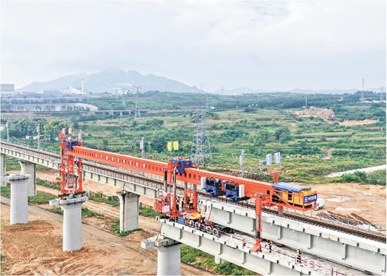 本次架设的首孔T梁位于龙烟铁路市域化改造工程施工2标段,采用DJ180型公铁两用架桥机架设,该设备集提梁、运梁、架梁功能于一体,能够实现机械化、自动化作业,工序衔接紧密,架梁速度、安全系数和经济性均远优于传统工艺,适用于后续多跨长桥的规模化施工。