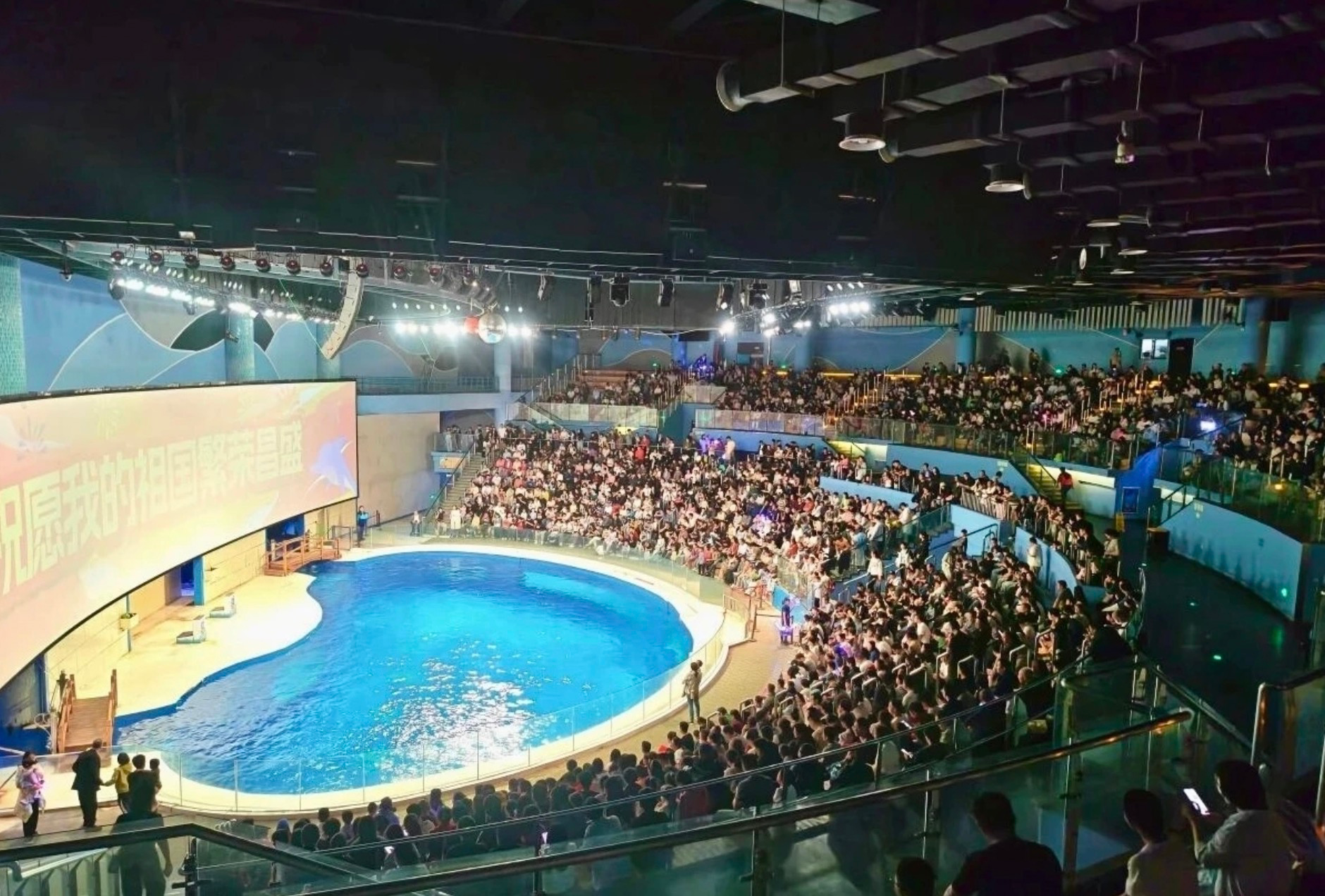 海洋公园的表演座无虚席。图源:直播日照