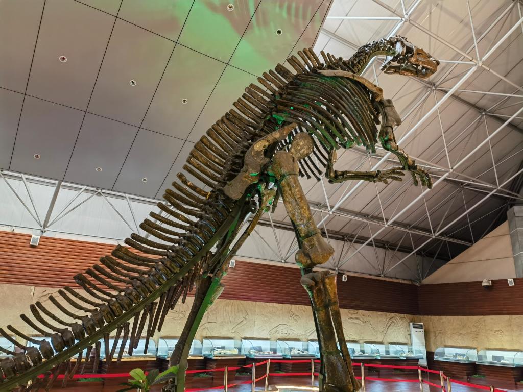 走进山东潍坊诸城市恐龙博物馆,一具长16.6米、高9.1米的“巨大诸城龙”化石骨架标本,引来游客的阵阵惊叹。
