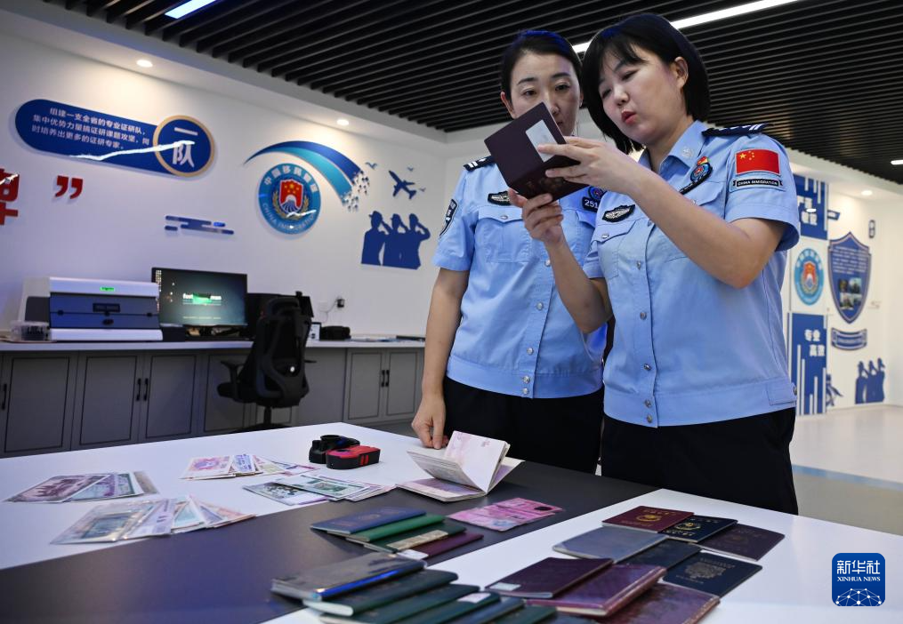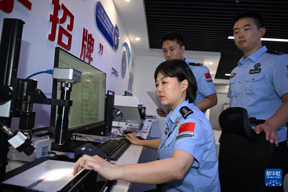 在山东边检总站青岛机场边检站,有一群专业从事证件鉴别及研究的移民管理警察。他们秉持精益求精的工匠精神和“严谨、敏锐、专业、高效”的职业素养,练就一双双去伪存真的“火眼金睛”。他们多次与公安、海关等部门联合执法,共同打击违法犯罪活动。新华社记者 李紫恒 摄