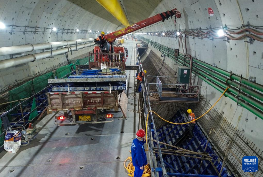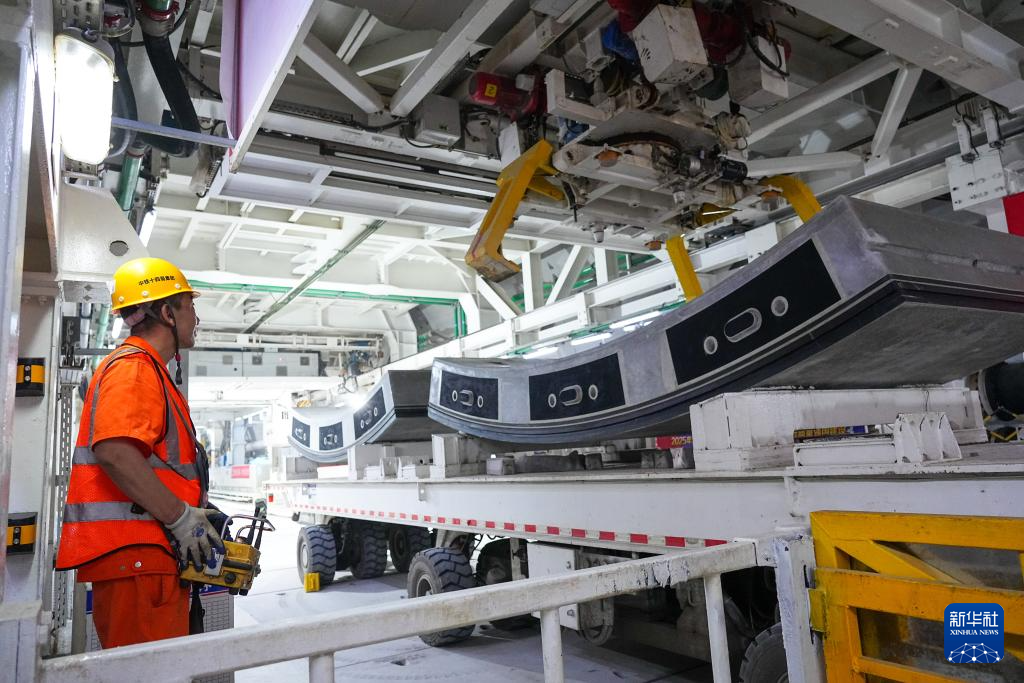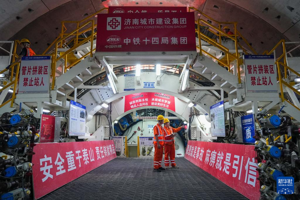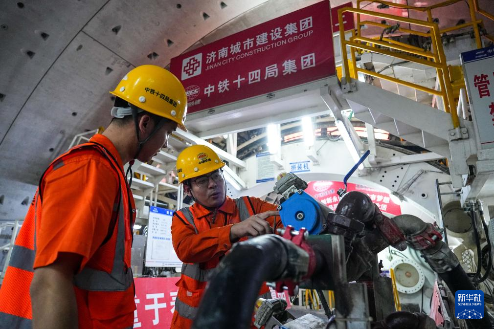 10月19日,中铁十四局工程人员在济南航天大道黄河隧道南线施工。新华社记者 朱峥 摄