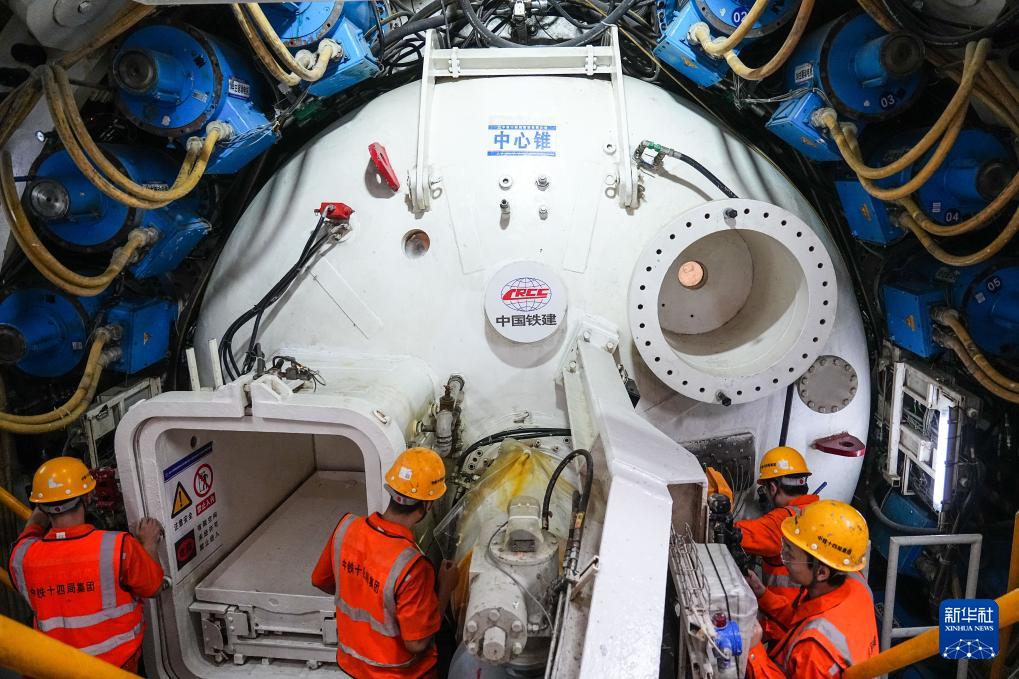 10月19日,中铁十四局工程人员在济南航天大道黄河隧道南线盾构段作业。新华社记者 朱峥 摄