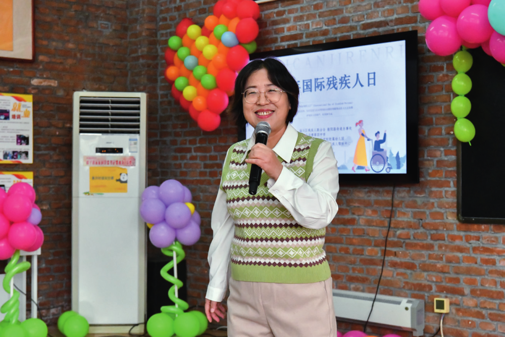 在山东省淄博市淄川区憨兜家园残疾人帮扶中心,李彤与“孩子”们一起欢 度国际残疾人日(2024 年 12 月 3 日摄) 受访者供图