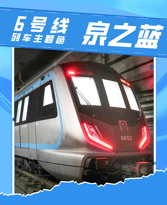 6号线列车设计以“泉之蓝”为主基调,加上挡风板和扶手的“荷花”造型,凸显了济南独特的文化特色,满满的济南味。