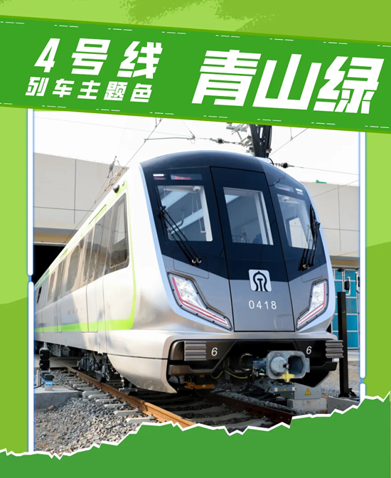 4号线列车车身的“青山绿”主题色腰带宛如一条翠绿的丝带,寓意着济南充满青春活力,历山叠翠,大地锦绣,生机盎然。