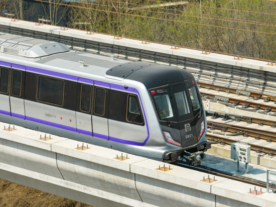 8号线列车的银灰色车体搭配“科创紫”彩带,彰显出浓郁的“科创范儿”与沿线的“科技之城、创新之城”风貌相得益彰。