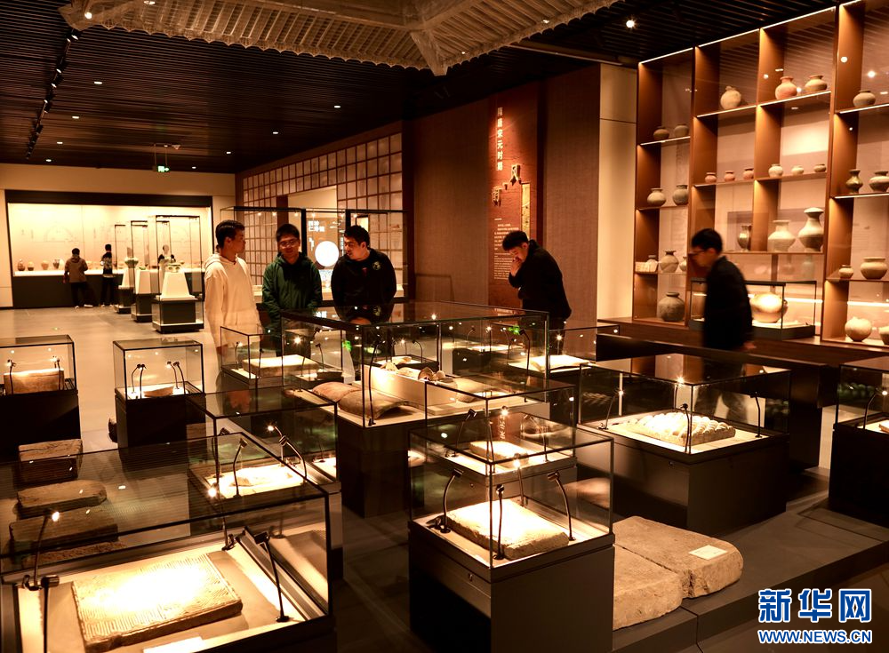 学生们在参观考古成果。新华网发(侯新建 摄)