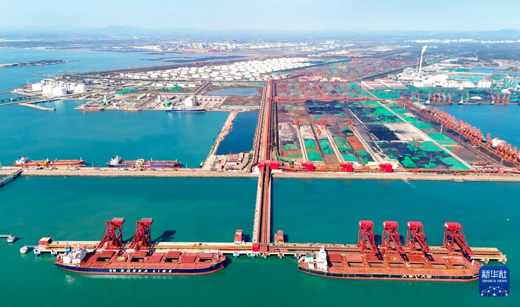 10月27日在山东青岛拍摄的山东港口青岛港第二座40万吨矿石码头(无人机照片)。