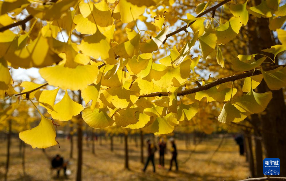 近日,受降温影响,济南市区的银杏树叶陆续变黄,吸引市民到银杏林里饱览秋色。