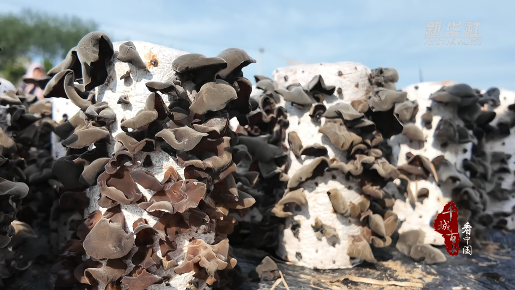 近日,在山东省日照市东港区西湖镇,黑木耳进入收获期。一排排菌棒整齐排列,黑亮饱满的木耳在菌袋上竞相“绽放”,农户们在忙着采摘,现场一派丰收的景象。