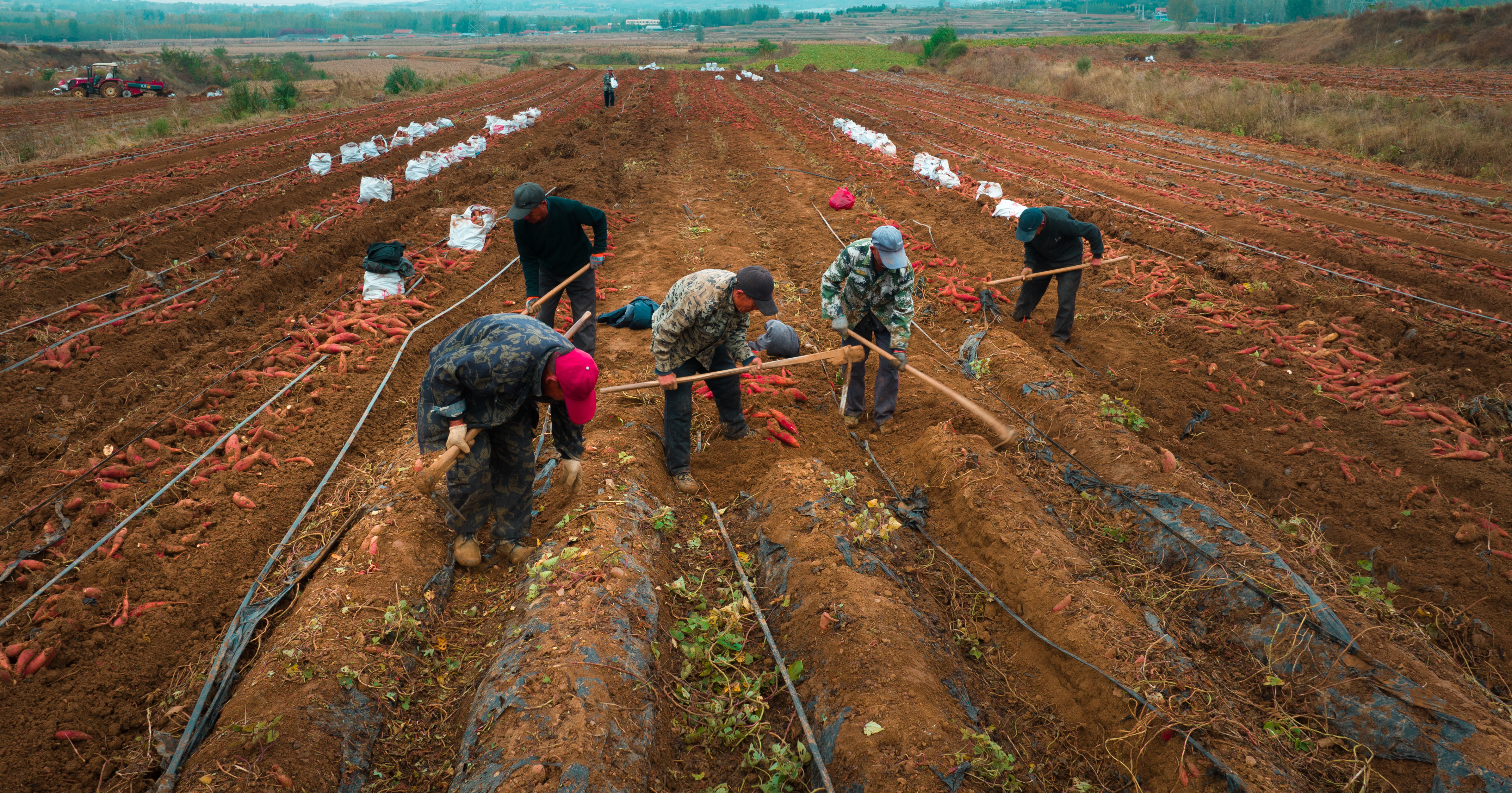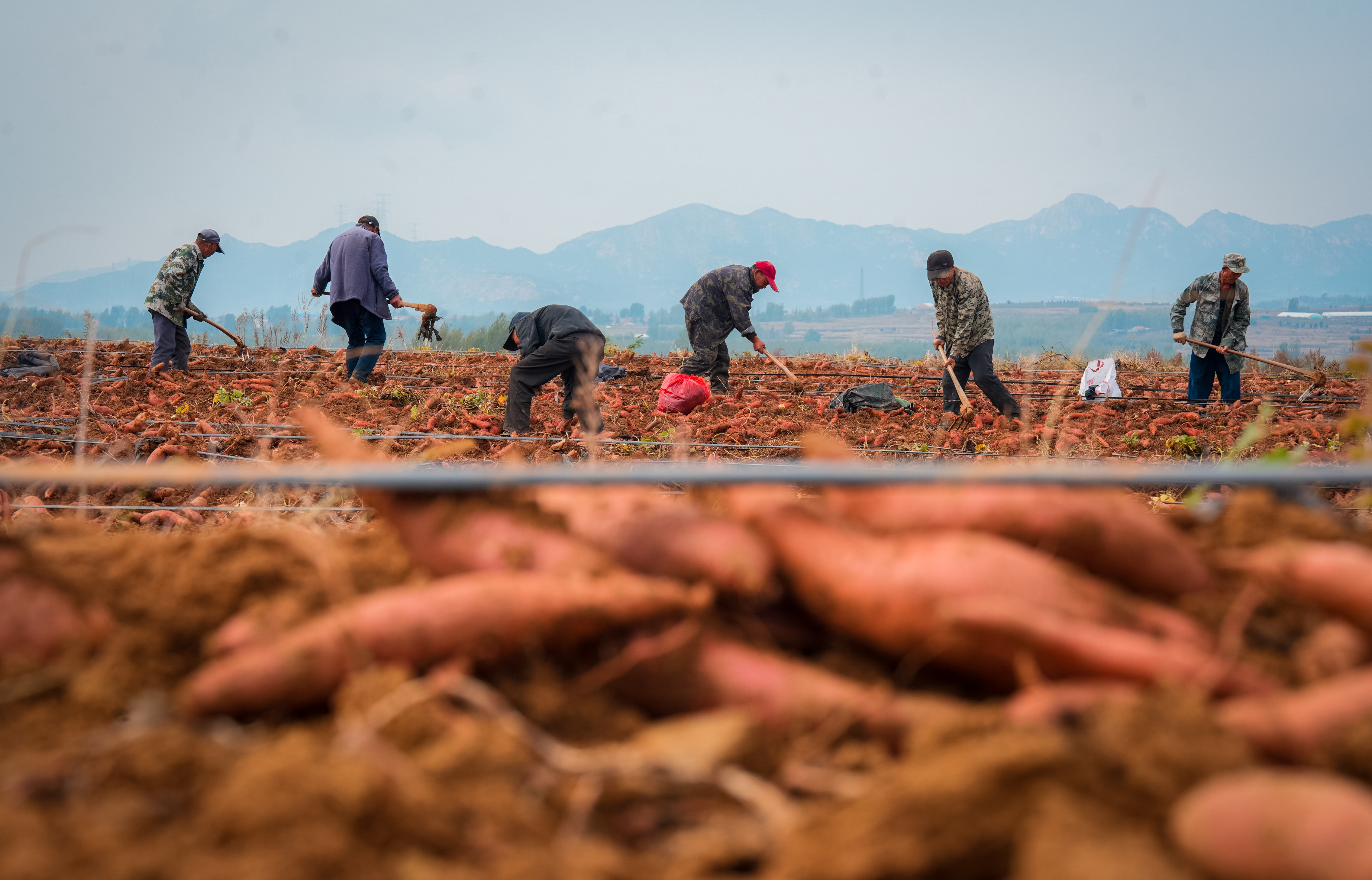 农户们正忙着采挖、分拣、装箱。而一辆辆大型货车早已在地头等候,将这些品质优良的蜜薯直接发往市场,实现了从“田间”到“市场”的无缝对接。