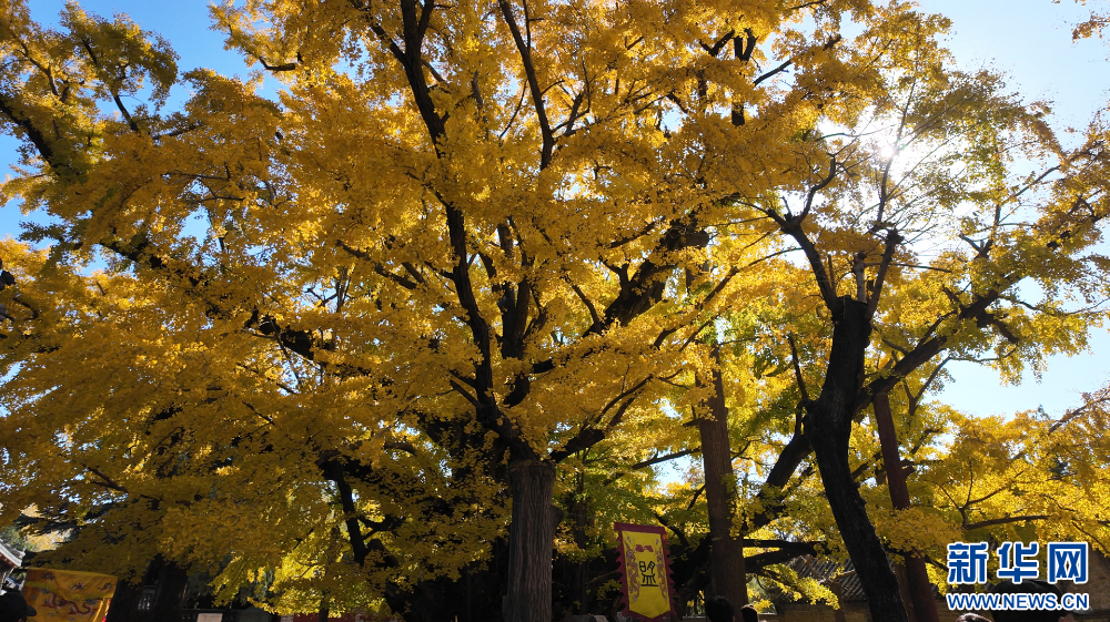 11月上旬是千年银杏树的最佳观赏期。新华网发(纪贵阳 摄)