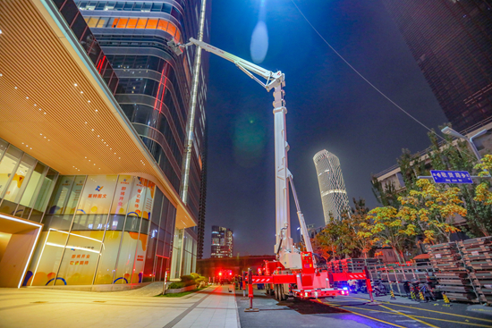 “报告指挥中心,济南平安金融中心45层发生火灾,有人员被困,请求支援!”11月5日晚,山东省消防救援总队在济南组织开展超高层建筑夜间灭火救援实战演练,全面锤炼队伍夜间高空攻坚能力,检验救援体系实战效能。