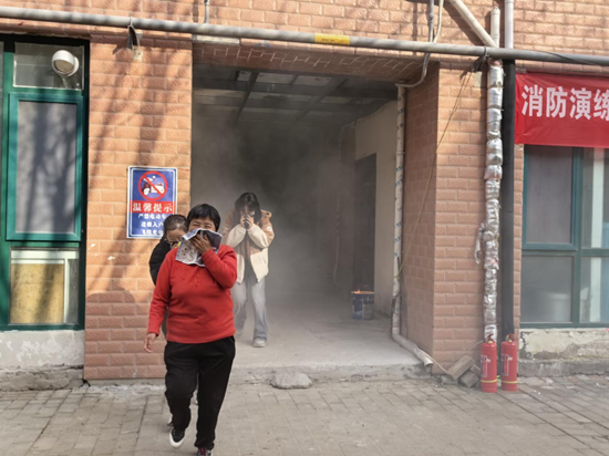 消防车展示活动结束后,消防演练正式启动。随着“3楼发现模拟火情,请居民立即有序疏散”的指令通过扩音器响起,安全烟雾发生器释放出少量无害烟雾,楼道内迅速营造出贴近真实的应急场景。早已在各楼层就位的社区工作人员与消防指战员立即行动,在楼梯口、楼栋门口引导疏散,居民们按照指引沉着、有序地从楼栋内撤离,仅用8分钟便全部疏散至指定集合区。